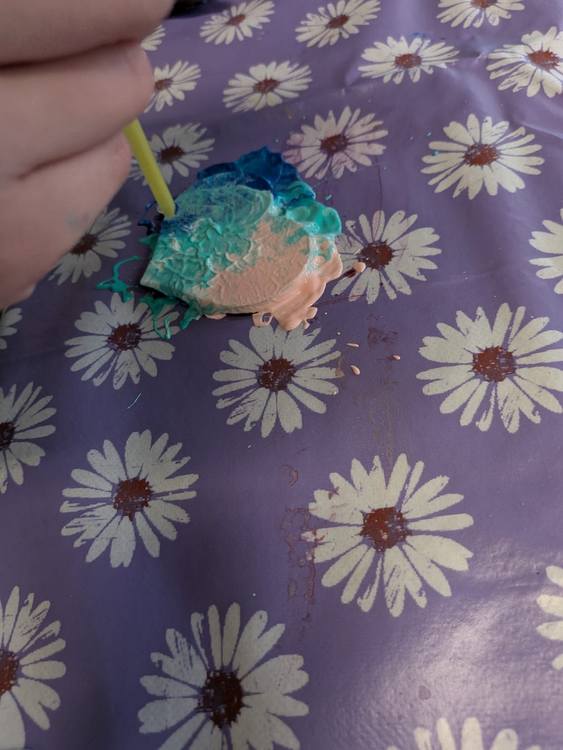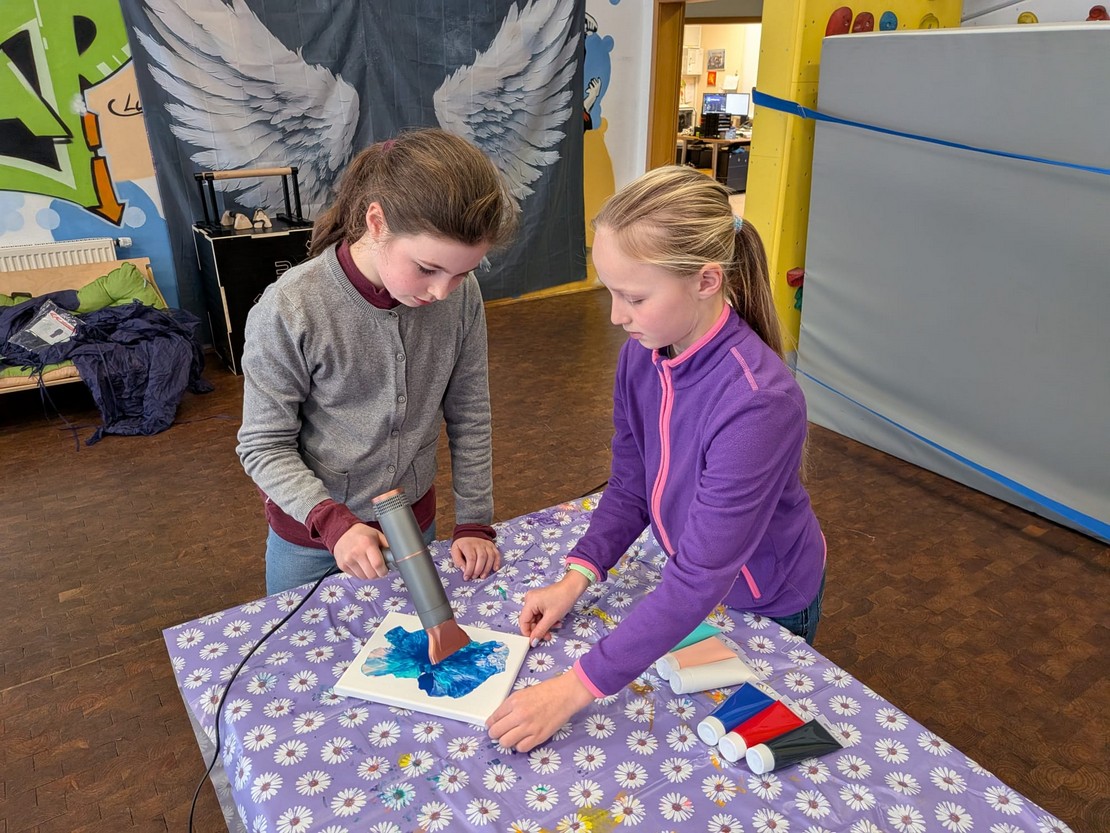 ans Werk: Mit Acrylfarben, einem Fön und Strohhalmen entstanden durch gezielte