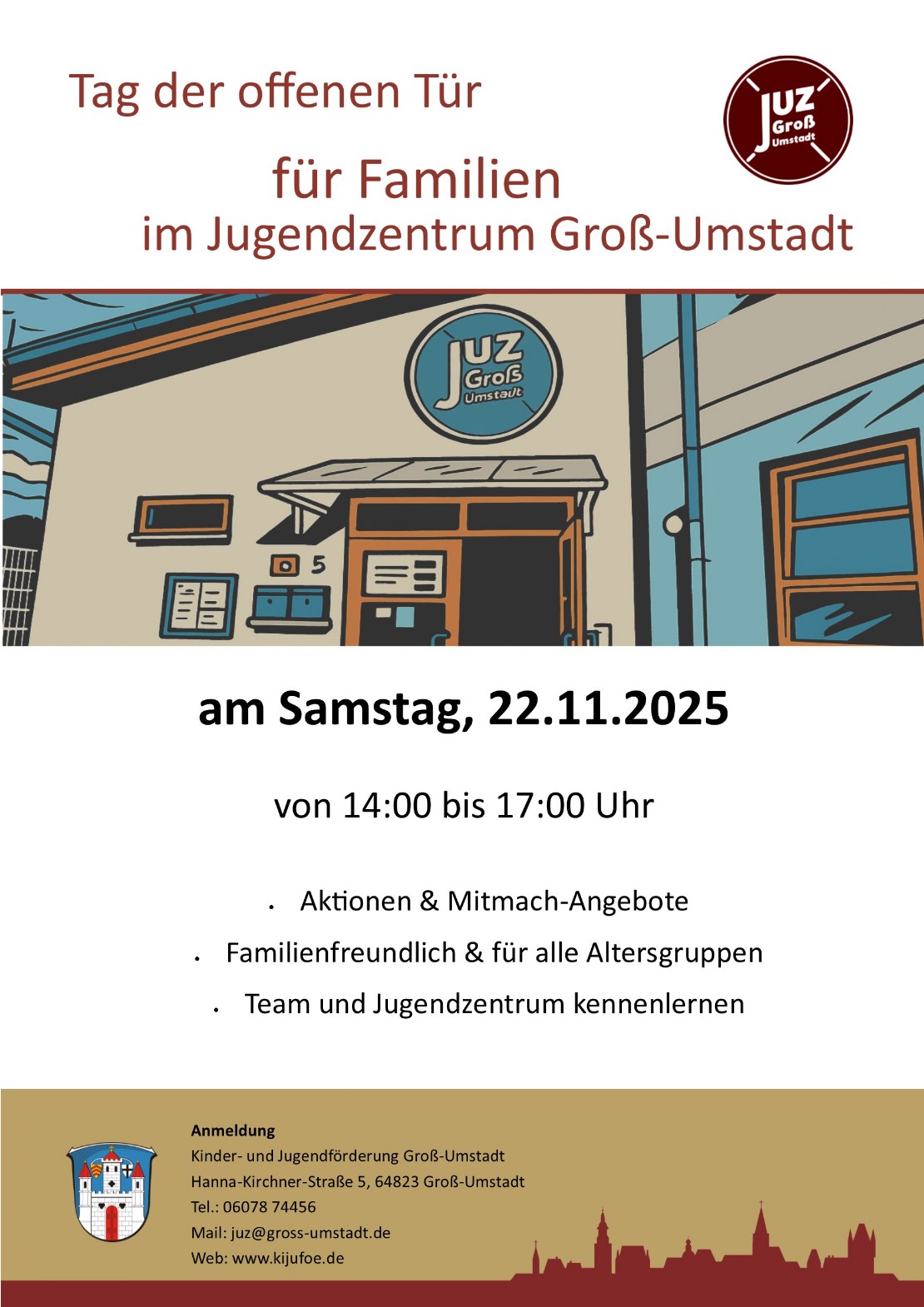2025, öffnet das Jugendzentrum Groß-Umstadt von 14:00 bis 17:00 Uhr seine Türen